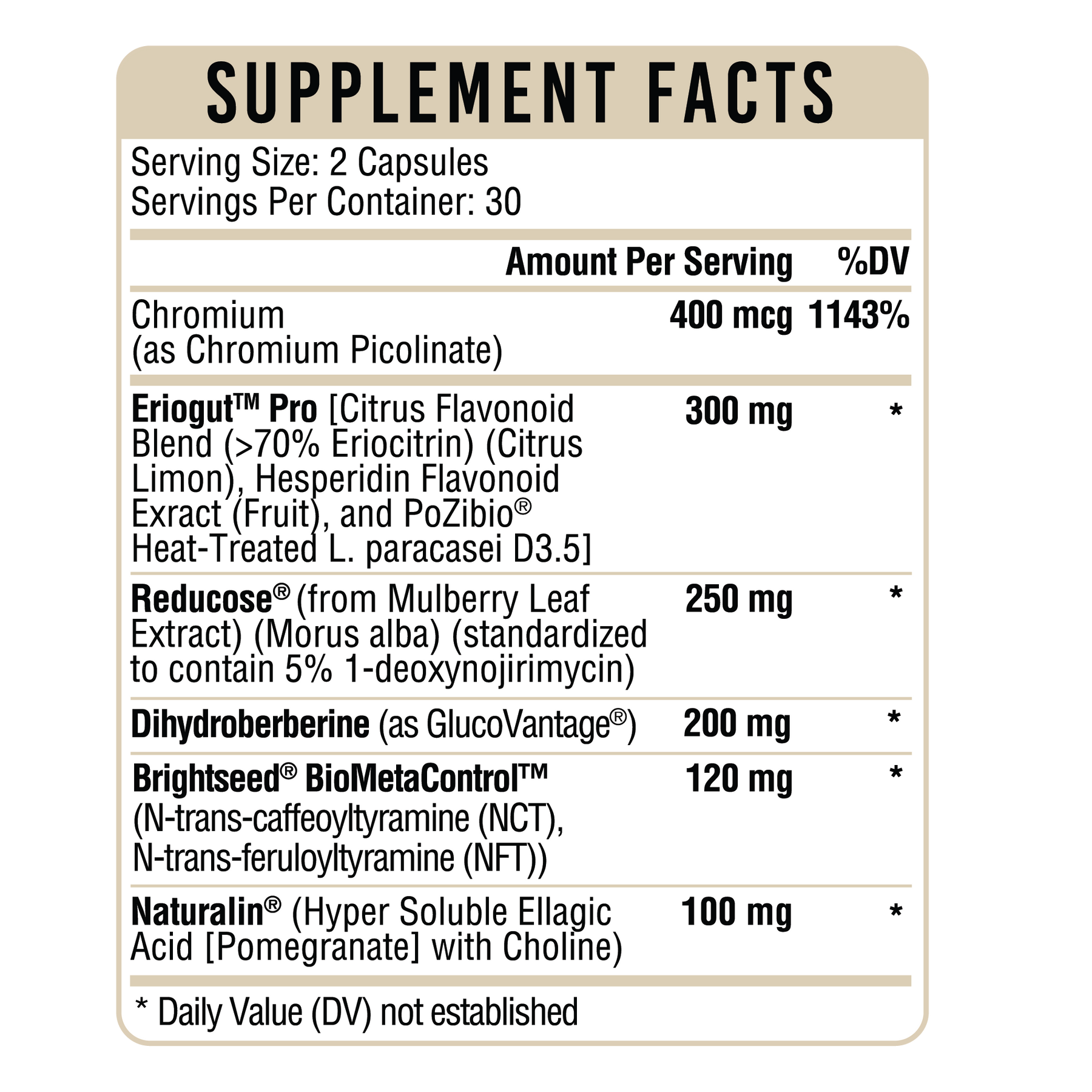 Chromium (as Chromium Picolinate) – 400 mcg