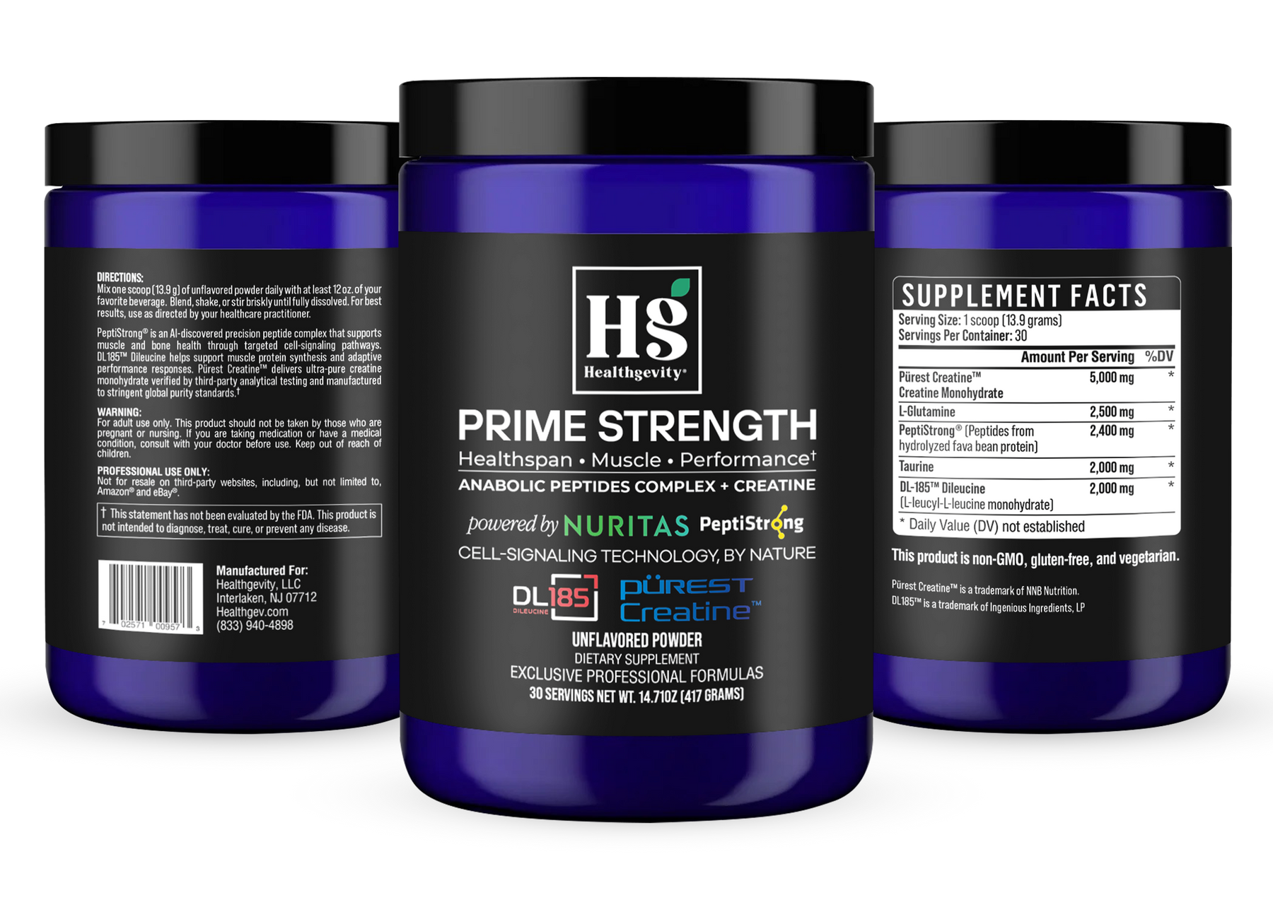 Prime Strength 3.0 is an advanced, all-in-one performance formula designed to support muscle strength, recovery, and long-term resilience—helping the body stay strong, adaptable, and optimized. This next-generation blend combines DL185™ Dileucine and PeptiStrong® precision peptides with creatine, glutamine, and taurine to support muscle maintenance, cellular energy, and post-exercise repair.